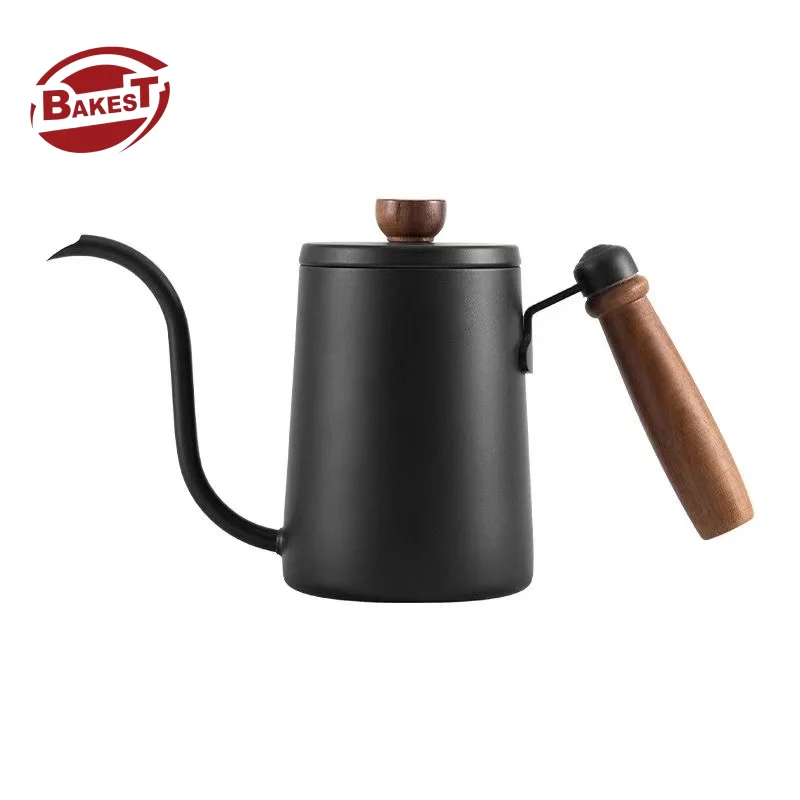304 Stainless Steel Pour-Over Kettle with Narrow Spout and Long Handle Wooden Handle Hanging Ear Coffee Pot set