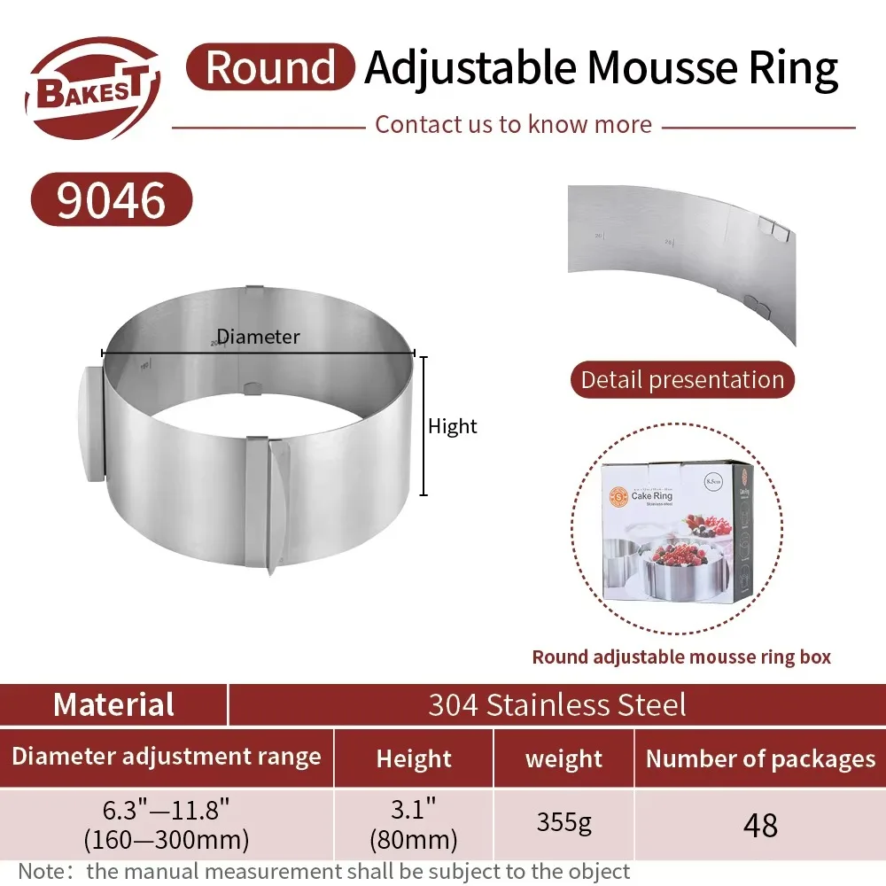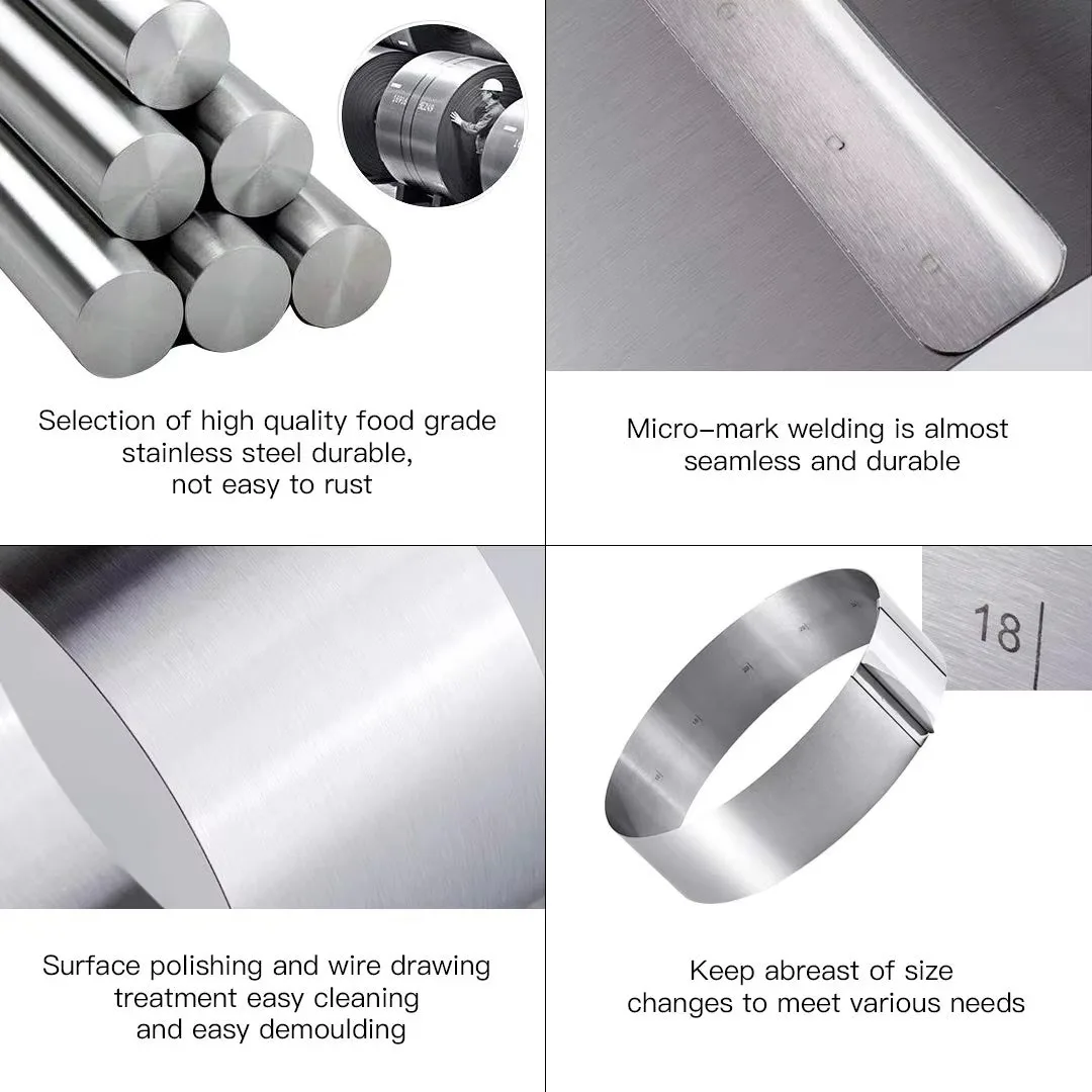 Bakest Adjustable Circle Round Cake Ring Hight Baking Mould Dessert Height Ajustable Retractable 16~30cm Mousse Key Metal Mold