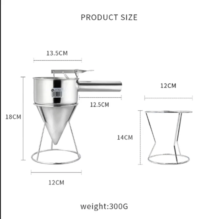 Bakest Stainless Steel Kitchen Pancake Batter Dispenser With Stand Pastry Cake Decorating Tool Confectionery Piston Funnel