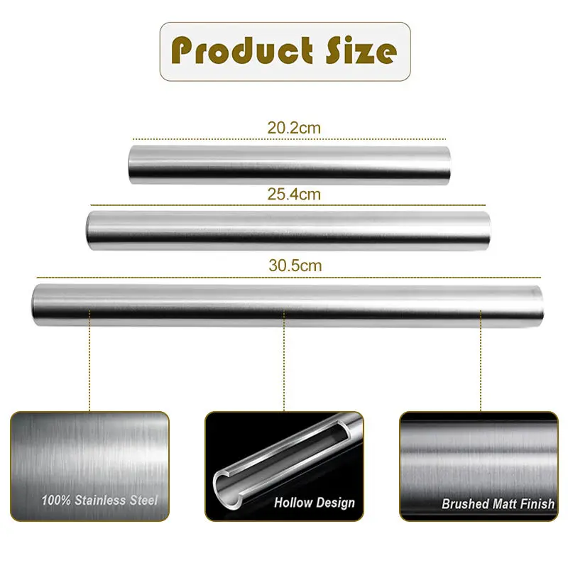 9003 | Stainless steel Rolling Pins -30cm | 518 | 24 | 33*30*42 |