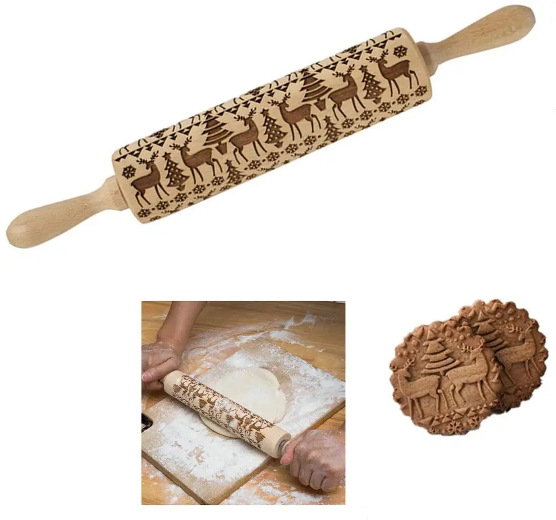 Bakest Wooden Christmas Printing Rolling Pin Wooden Carving Embossed Rolling Pin Cookie Dough Stick