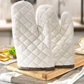 Bakest Wholesale White Cotton Fireproof Grilling Heat-resistant Mitt Double Oven Gloves For Kitchen Recycled Cotton Oven Mitts
