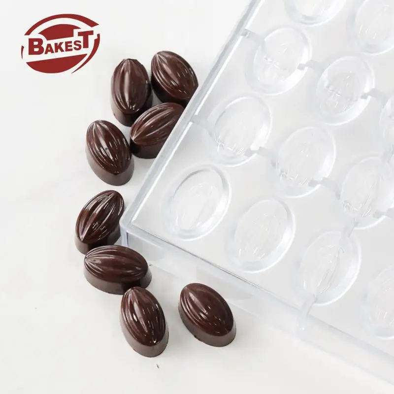 QL-1316 | 32-piece oval-shaped cocoa pattern chocolate mold | PC | 275*175mm | 32*20*H17mm |