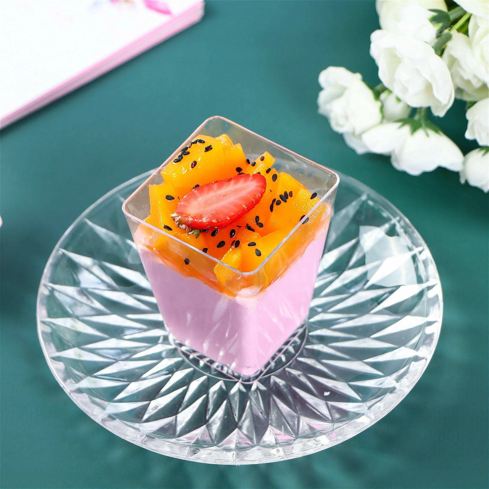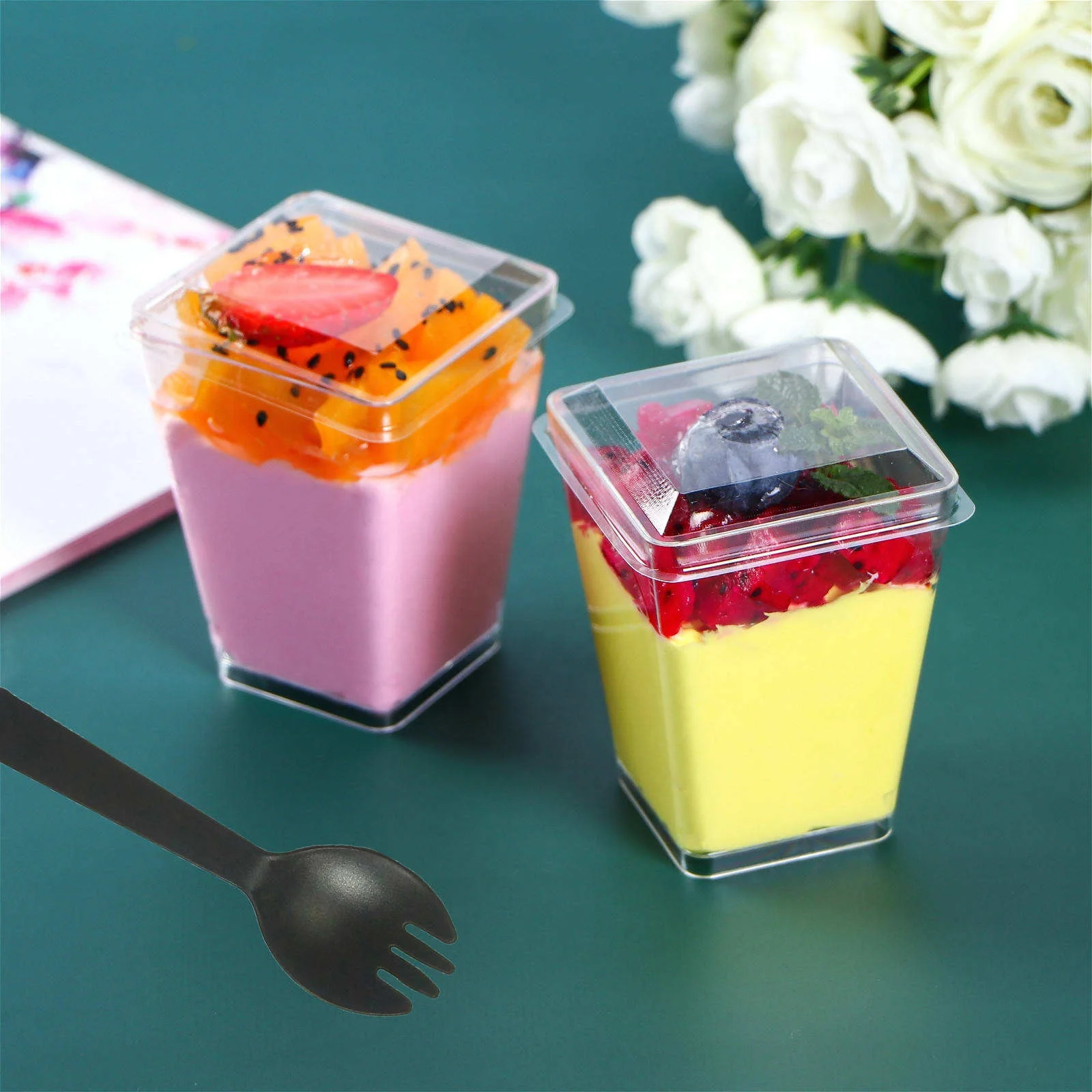New Food Grade Products Plastic Dessert Cup Ice Cream Double Skin Milk Cup Transparent Square Shaped Mousse Cup