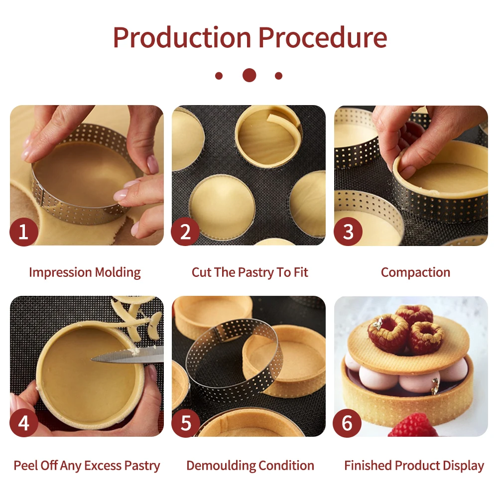 Bakest Food Grade Stainless Steel Round Bakeware Dessert Tools Tart Ring Perforated