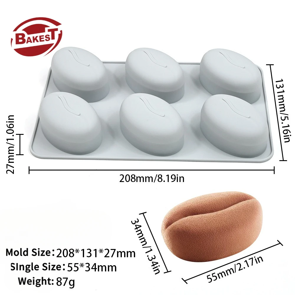 MCM-643 | 6-Cavity Coffee Bean Mousse Silicone Mold | Silicone | 208*131*27mm | 87g |