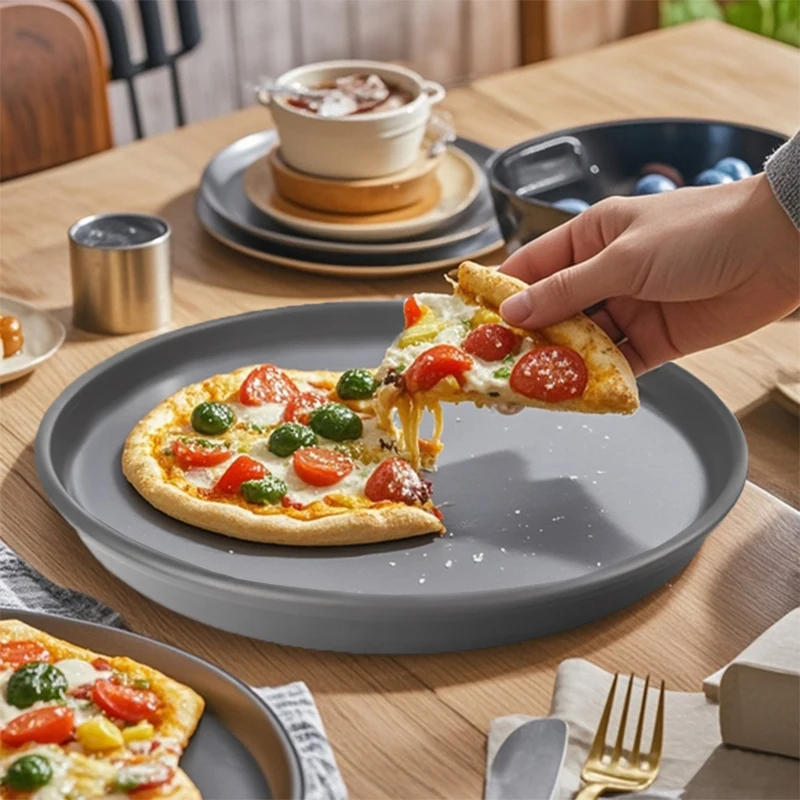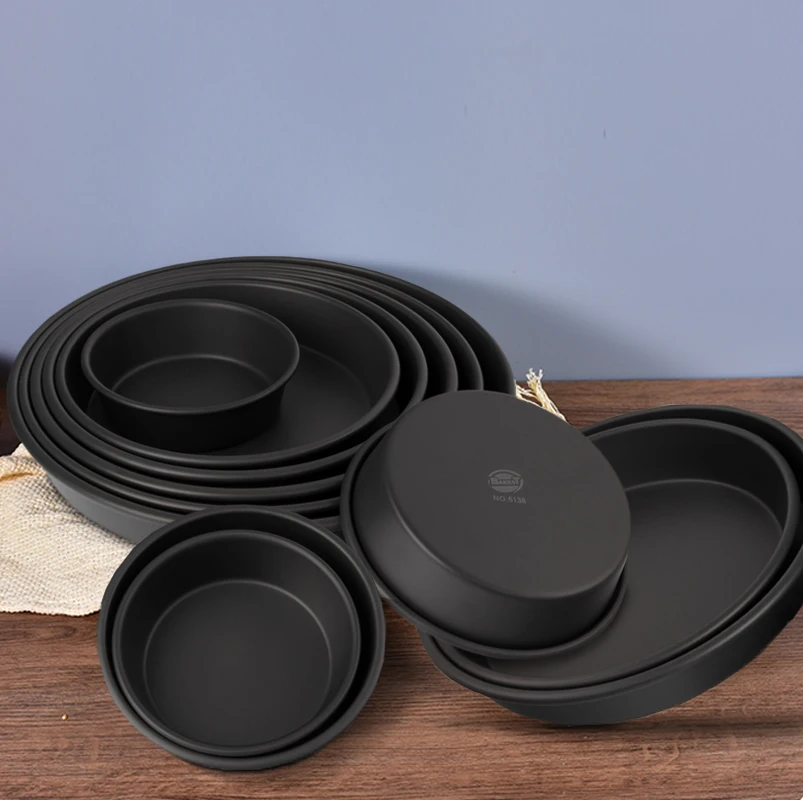Wholesale Bakeware Black Round Thickened Non-Stick Pizza Trays Aluminum Cake Pan Deep Dish Baking Mold Oven Tray Pizza Pan