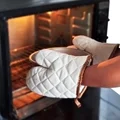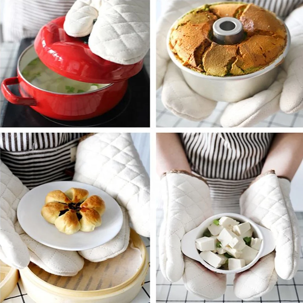 Bakest Wholesale White Cotton Fireproof Grilling Heat-resistant Mitt Double Oven Gloves For Kitchen Recycled Cotton Oven Mitts